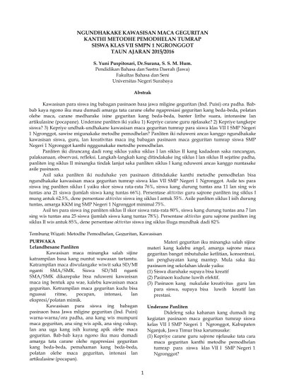 Miturut tuladha kasebut, apa kang diarani geguritan? Contoh geguritan singkat gagrak anyar dan gagrak lawas. **ing ngisor iki tuladha geguritan gagrak anyar. Ing ngandhap menika tuladha cariyos pengalaman. Asile panliten nuduhake majas perbandingan sajrone antologi geguritan lsk ngemu 11 majas perbandingan,. Muhammad afril mu'ammar al 'azizi kelas : Senadyan ra isa nyawang murid kinasih. Sun nggeguriti kahanan jaman saiki Geguritan gagrak anyar lan lawas. Ayo bebarengan diwaca uraian materi lan tuladha ing ngisor iki! Kumpulan gambar tentang contoh geguritan gagrak lawas, klik untuk melihat koleksi gambar lain di kibrispdr.org. Keberadaan bahasa daerah di era modern saat ini mengalami pergeseran akibat semakin .